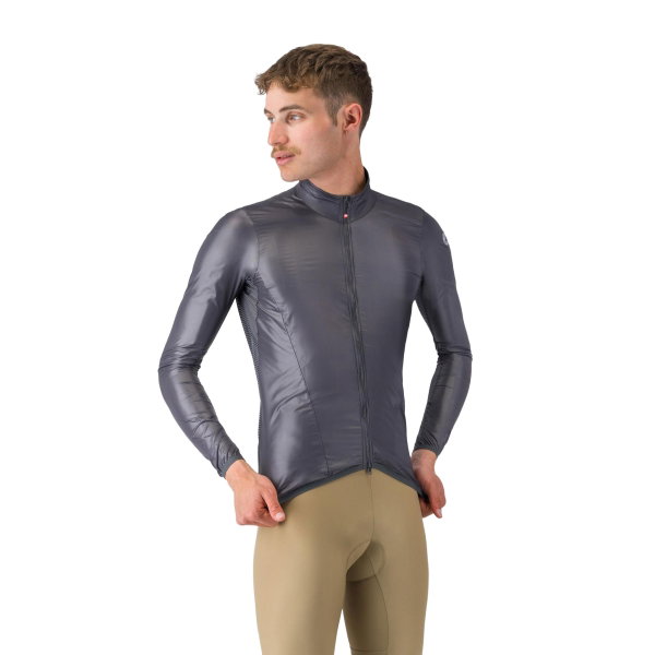 Die Castelli Aria Shell 2 Jacket ist die Weiterentwicklung eines funktionalen Klassikers und verbindet geringes Gewicht mit effektivem Windschutz. Das ultraleichte, winddichte Mikrofaser-Gewebe auf Vorder- und Rückseite schützt dort, wo es entscheidend ist, während gestreifte Mesh-Einsätze an den Seiten und an der Rückseite der Ärmel für Atmungsaktivität sorgen. Aktualisierte elastische Einsätze verbessern die Ergonomie, sorgen für einen noch besseren Sitz und verhindern ein Flattern im Wind. Der YKK® Vislon®-Zweiwege-Reißverschluss ermöglicht flexible Belüftung, während reflektierende Castelli-Logos die Sichtbarkeit erhöhen. Die Jacke ist extrem klein faltbar und verfügt über einen integrierten Packbeutel, sodass sie bei Bedarf platzsparend in Trikot- oder Satteltasche verstaut werden kann. Ideal für milde Temperaturen und wechselhafte Bedingungen.