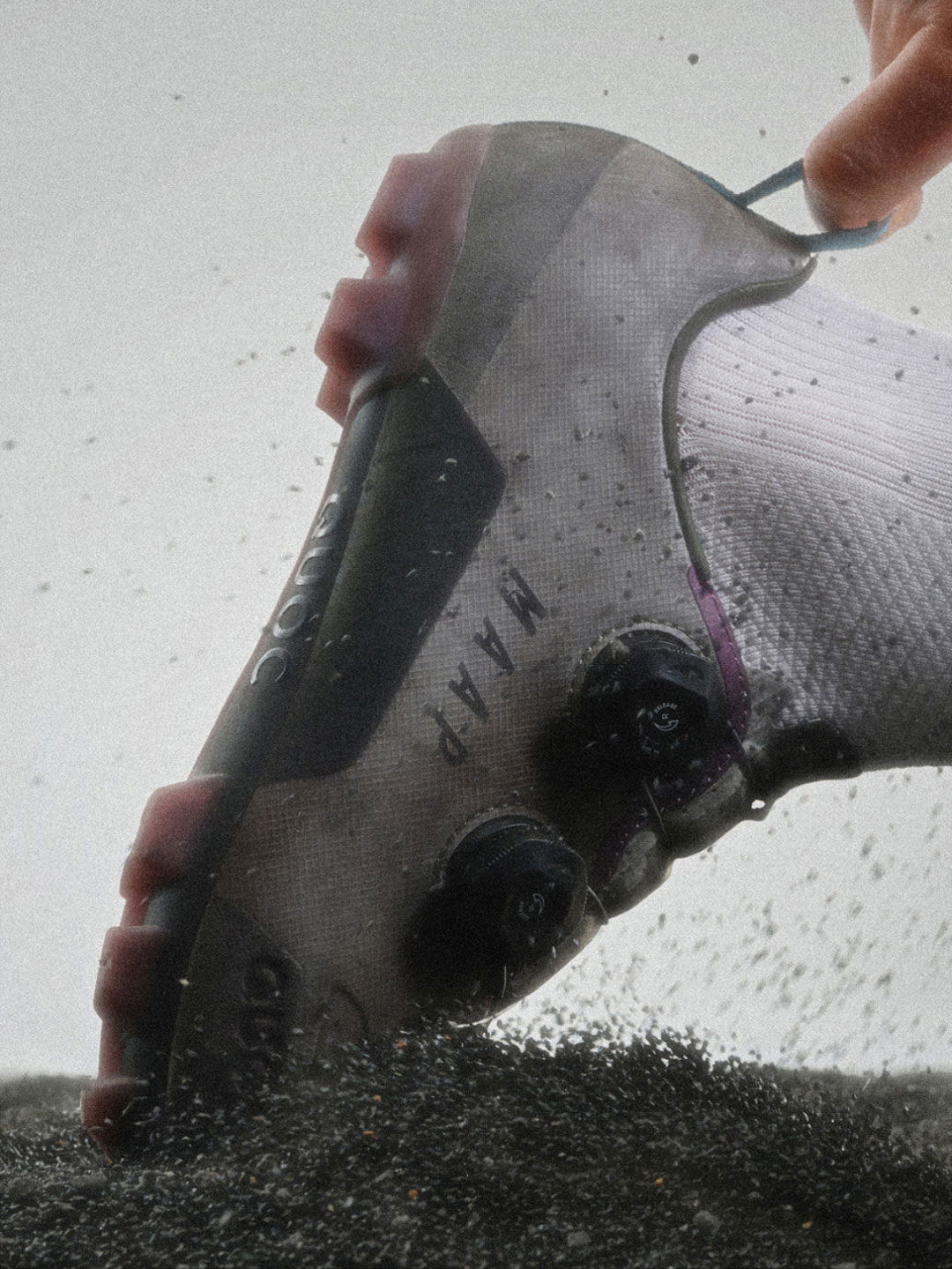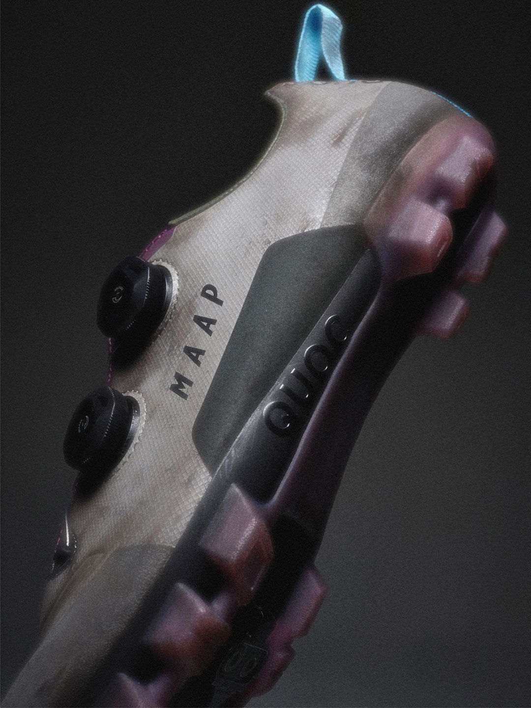 Der MAAP x QUOC Gran Tourer XC in limitierter Auflage ist der ultimative Offroad-Abenteuerschuh. Er bietet ein makelloses Performance-Paket mit Carbon-Außensohle für Steifigkeit und Dual-Dial-Verschluss für eine präzise Passform, ergänzt durch MAAPs unverwechselbare Designelemente und exklusive Finishes. Der MAAP x QUOC Gran Tourer XC ist die Wahl von Gravel-Rennfahrern und Ultra-Abenteurern auf der ganzen Welt und ist die nächste Evolution eines Hochleistungs-Geländeschuhs.
