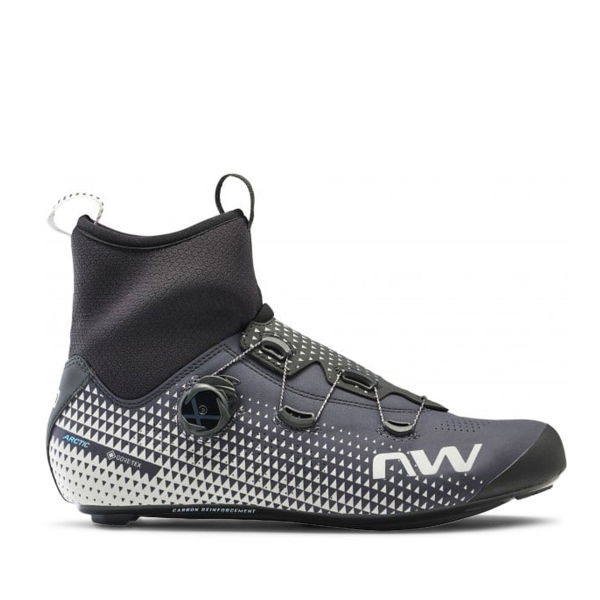 Dank der NRG Air Carbon Sohle mit einem Steifigkeitsindex von 8,0 wird eine hervorragende Kraftübertragung erreicht. Die Overlap-Construction des Oberschuhs reduziert den Windwiderstand, umhüllt den Fuß gleichmäßig und ermöglicht eine präzise Leistungsübertragung. Ein abriebfester Zehenbereich und das präzise SLW2-Drehverschlusssystem gewährleisten Komfort und Passgenauigkeit. Der Easyfit Climaflex Kragen, bestehend aus Gore-Tex Rattler®-Membran und Neopren, bietet Schutz und Mobilität. Eine ergonomische Fersenform und die Arctic 4Layer Einlegesohle sorgen für optimale Wärmedämmung. Zudem erhöhen 360° Reflexelemente die Sichtbarkeit bei schlechtem Licht.