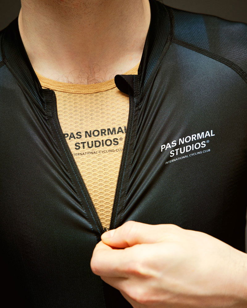 Alle Bündchen sind mit weichen, voll durchgefärbten Gummibändern ausgestattet, die für eine unverfälschte Farbe sorgen. Die Gummibänder verfügen außerdem über Pas Normal Studios charakteristisches Silikon-Muster, das das Trikot in einer optimalen Position hält, um deine aerodynamische Silhouette zu verbessern.
