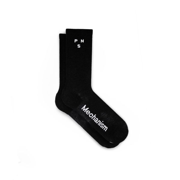 Die Socke ist mit dezenten Logos von Pas Normal Studios und Mechanism versehen.