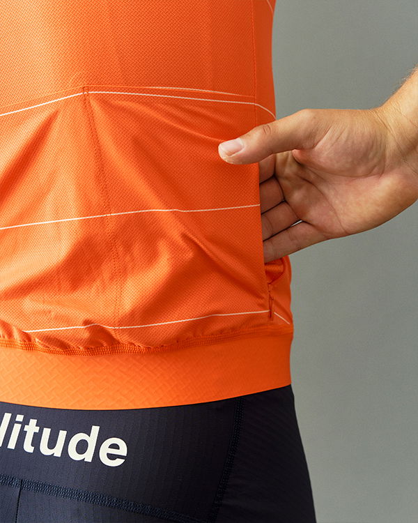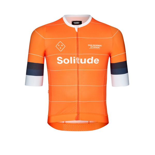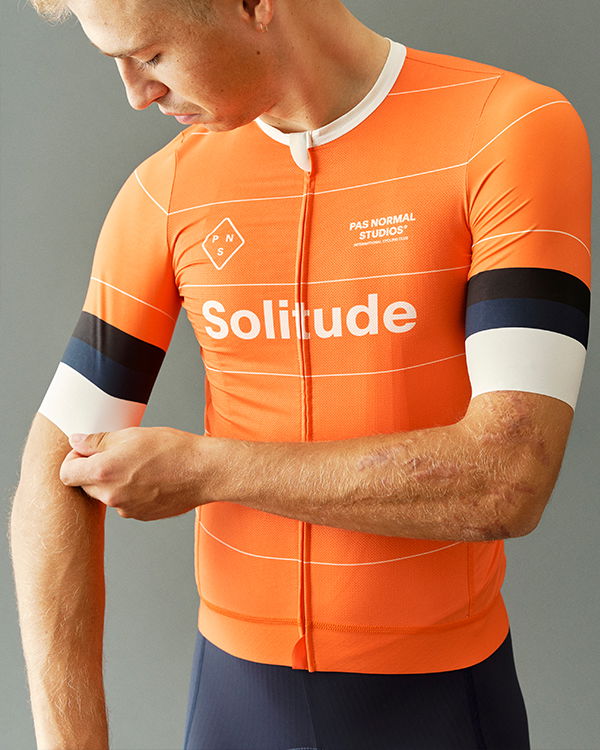 Das Solitude Radtrikot, eine Weiterentwicklung des SS23 Solitude Trikots und in der SS24 Kollektion bereits bewährt. Es bietet verbesserte Taschenzugänglichkeit und tiefere Ärmelausschnitte für gesteigerten Komfort beim Radfahren. Die flexiblen Ärmel passen sich nahtlos jeder Form an und tragen zur Aerodynamik bei. Durch den Verzicht auf elastische Griffe und die offenen Kanten an reibungsintensiven Stellen wurde unnötige Spannung an den Ärmeln vermieden. Exklusiv für Pas Normal Studios entworfene, urheberrechtlich geschützte Materialien machen das Solitude Trikot aus. Sein Hauptstoff weist eine Mikrostruktur auf, die nicht nur atmungsaktiv ist, sondern auch das Ankleben am Körper reduziert, wodurch eine Basisschicht überflüssig wird.
