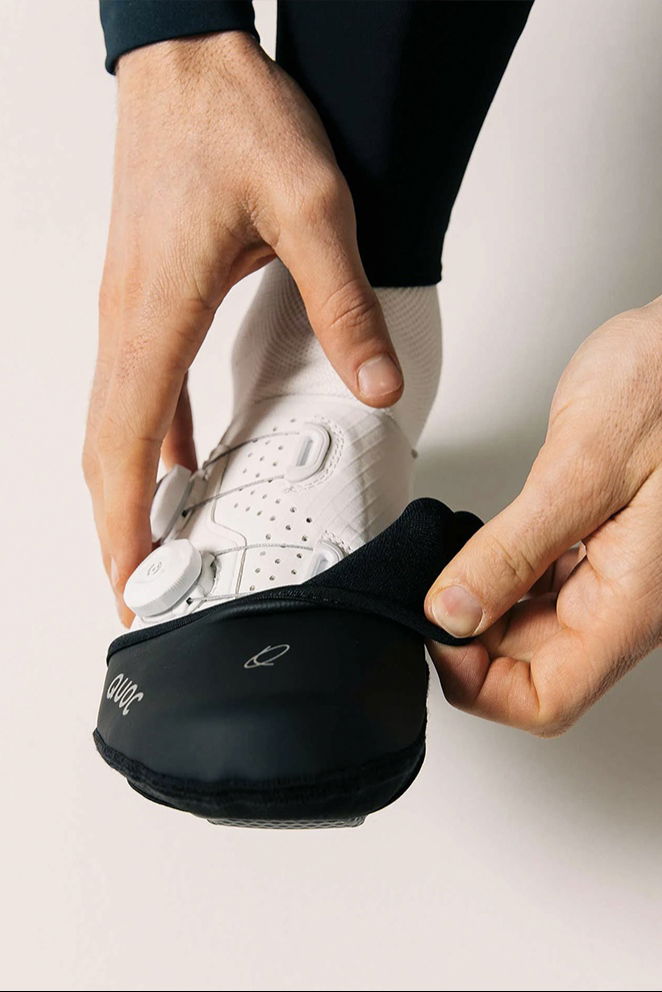 Der Überzug lässt sich bequem über jeden QUOC-Schuh ziehen und sorgt für einen festen und unverrückbaren Sitz. Die Stollenöffnung an der Unterseite ist so gestaltet, dass sie beim Gehen nicht einschnürt und abnutzt.