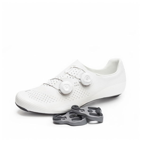 Die M3 Pro Rennradschuhe bieten eine steife Nylon-Carbon-Sohle für direkte Energieübertragung, während das leichte Mikrofaser-Obermaterial atmungsaktiv und komfortabel bleibt. In Verbindung mit den Look Kéo Cleats mit Grip-Beschichtung ergibt sich ein durchdachtes Klicksystem für maximale Kontrolle, Stabilität und Sicherheit beim Gehen.